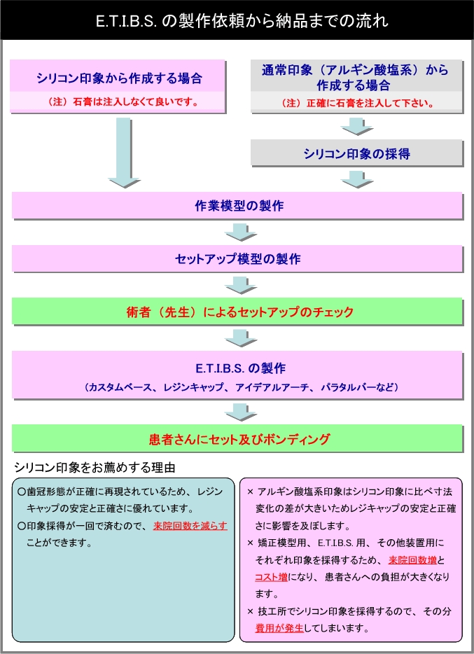 E.T.I.B.S.の製作をご注文頂く場合は、医院様で以下のものをご用意の上、デンタルファームまでお送り下さい。