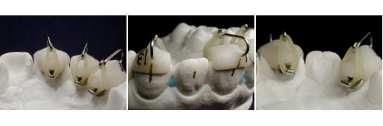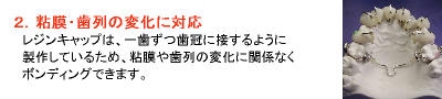 個々の歯に着脱および再利用可能なレジンキャップを製作することでブラケットの脱落時にも対応できるインダイレクトボンディング法です。
