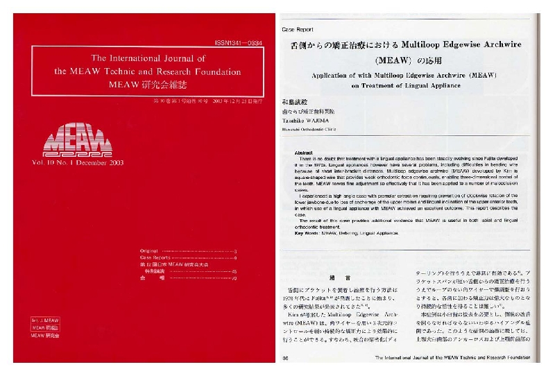 また、平成15年(2003年)には、歯ならび矯正歯科医院の和島先生、ハッピー矯正歯科の植木信先生と共に日本矯正歯科学会誌(Orthodontic Waves)には論文として発表しております。