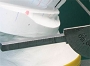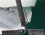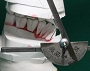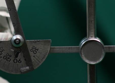 2 切縁にインクリネーションゲージ(プロトラクター)の中心部ピン尖端を合わせる。